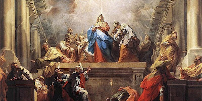 It represents the fulfillment of Christ's promise from the end of Luke's Gospel: “Thus it is written, that the Christ should suffer and on the third day rise from the dead, and that repentance and forgiveness of sins should be preached in his name to all nations, beginning from Jerusalem. You are witnesses of these things. And behold, I send the promise of my Father upon you; but stay in the city, until you are clothed with power from on high” [Lk. 24:46-49]. This "clothing with power" comes with the bestowal of the Holy Spirit upon the Church.